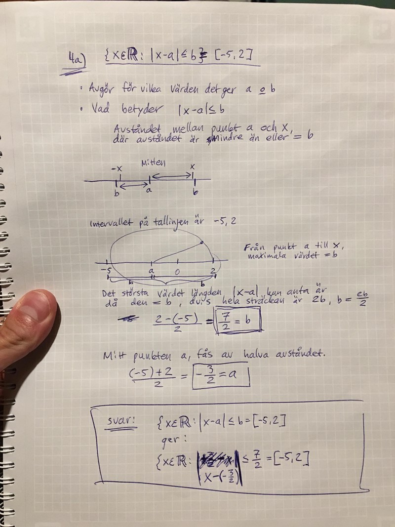 {x e R: Absolutbeloppet( x - a) <= b = [(-5), 2] }
