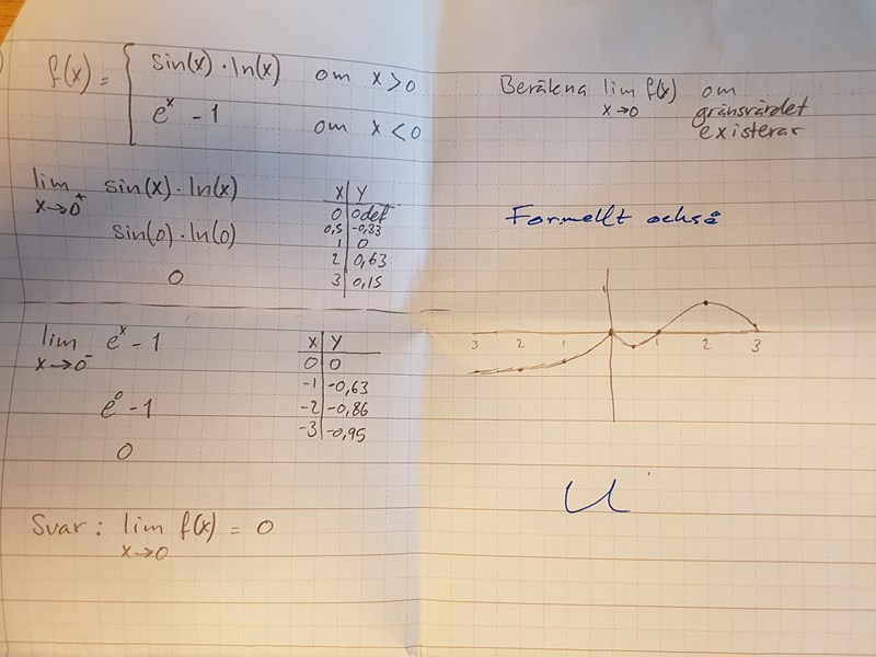 Sedan är funktionen kontinuerlig i vilket ger vänstergränsvärdet