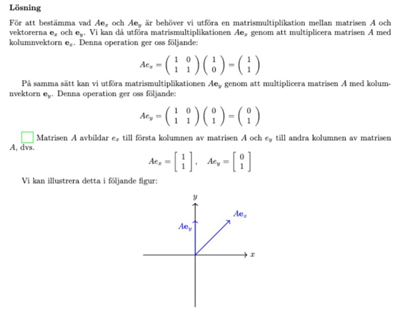 Jag har löst uppgift (a) och (b) där jag ritade en figur som visar hur basvektorerna och avbildas av matriserna.