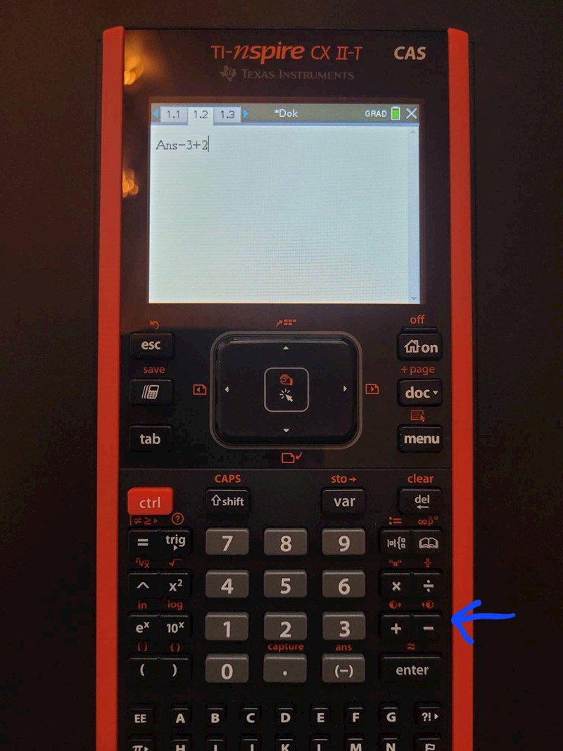 Något jag undrar över är varför det står "Ans-" när jag ska skriva in ett negativt tal. Det gör så att beräkningarna blir felaktiga, om jag upprepade gånger matar in tex -4+2 så får jag svaret -1, sedan -3 och sen -5 vid upprepning. Det funkar om jag sätter parenteser runt de negativa talen, men lite jobbigt att göra vid snabba uträkningar. Går detta att ändra på något sätt eller skapar det ytterligare miniräknarrelaterade komplikationer? Min räknare heter TI-Nspire™ CX II-T.