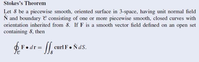 Hej, jag har en fråga om satsen i första bilden. Har inte hört uttrycket normalfält tidigare så är lite osäker men jag tänker att i exemplet nedan så har vi en sfär x2+y2+(z-2)2=8 vars normal vi kan kalla N. Själva cirkelns x2+y2=4 normal kan vi kalla M. Hur avgör jag vilken normal jag ska använda till satsen, M eller N?
