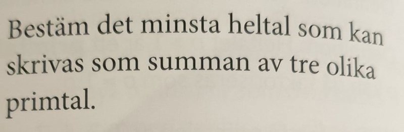 Skaft skrev:Du har hittat rätt primtal, nämligen 2, 3 och 5. Men varför skulle man inte kunna addera dem? 2+3 har du nog plussat ihop förut, t.ex. Och i uppgiften står det "summa", så då betyder det plus, inte gånger.