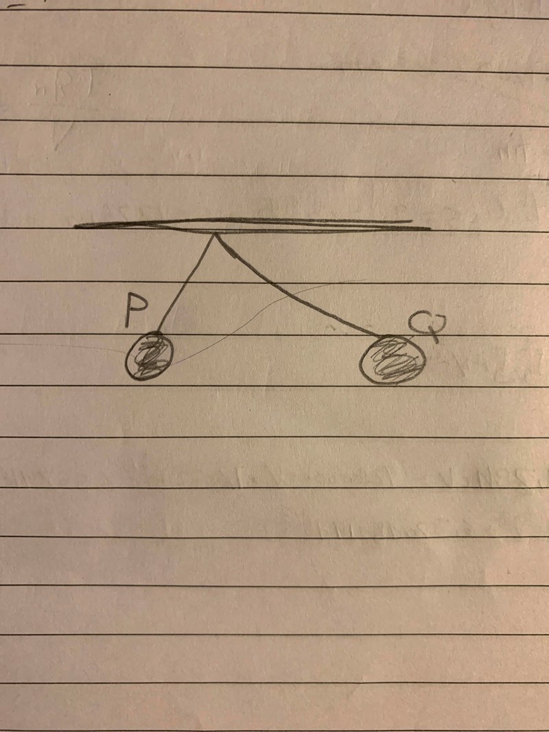 Två elektriskt laddade föremål, P och Q hänger i isolerade snören enligt figur.