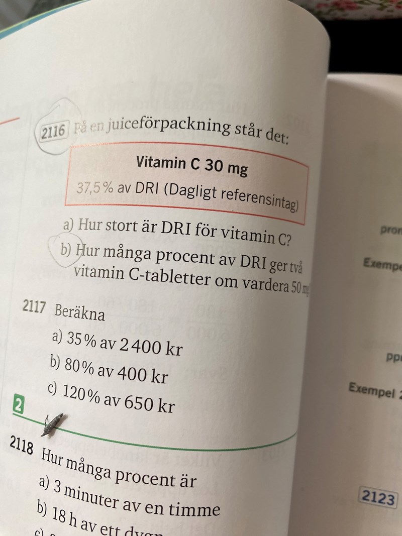 Hur löser jag denna? Har kommit fram till att DRI för vitamin c är 80mg (uppgift a) men hur löser jag b)?
