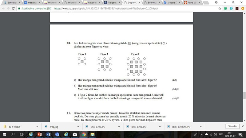 Apelsin- i figur en finns 4 träd och i figur två finns 8 i tran finns 12 alltså ökar med 4 eller med annat ord