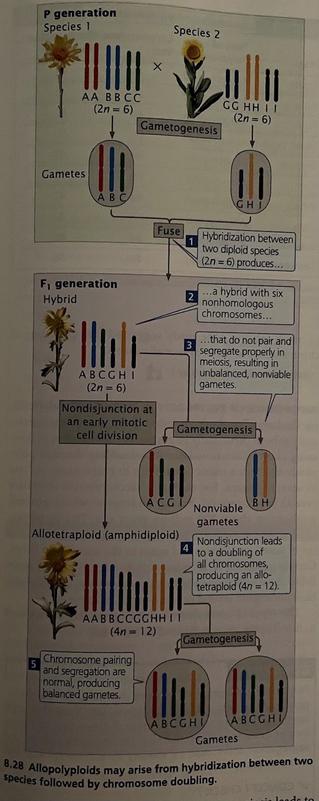 Jag har några frågor angående Allopolyploidi. I min lärobok finns den här bilden: