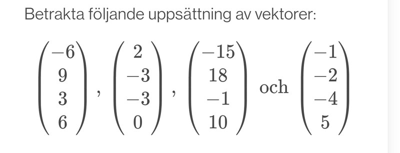 Fråga 1. Är uppsättningen en bas för R^4 ? ( Ja/nej)