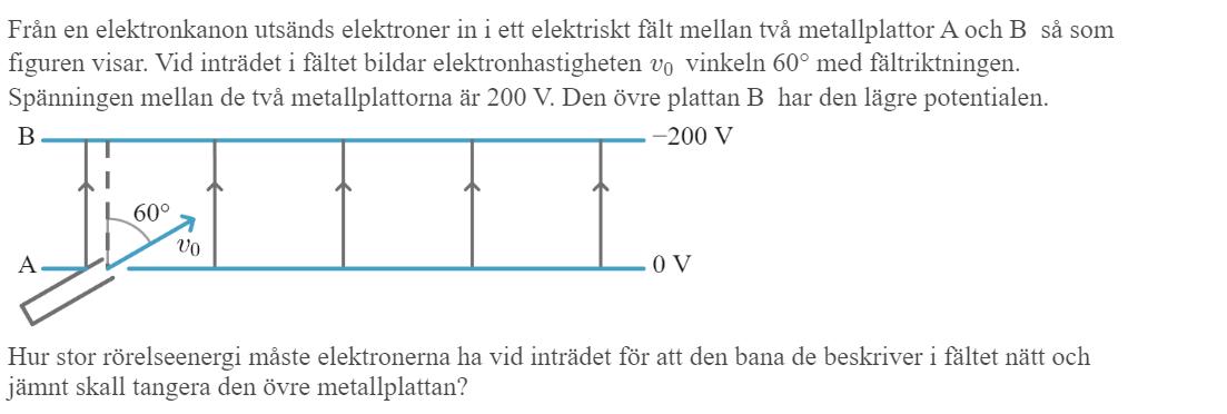 Från en elektronkanon utsänds elektroner in i ett elektriskt fält