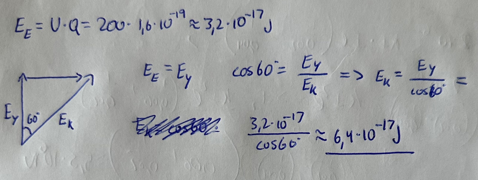 Varför räknar facit med v istället för E såsom jag gör? Varför är min lösning fel? Får man inte använda energi som vektorer? Om inte, varför inte?