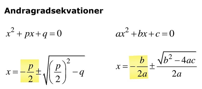 Ur formelbladets beskrivning av pq-formeln och lösningsformeln ("abc-formeln") framgår det var symmetrilinjen ligger (gulmarkerat).och att denna ligger mitt emellan eventuella reella nollställen;
