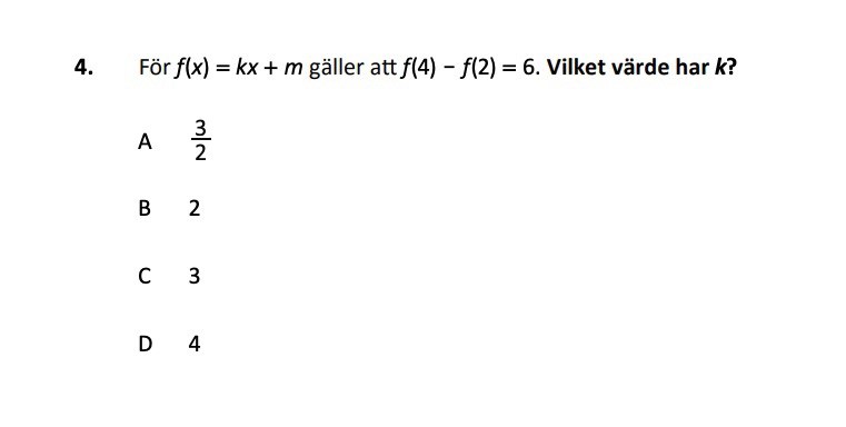 Om f(x) = k*x+m så är f(4) = k*4+m och f(2) = k*2+m.
