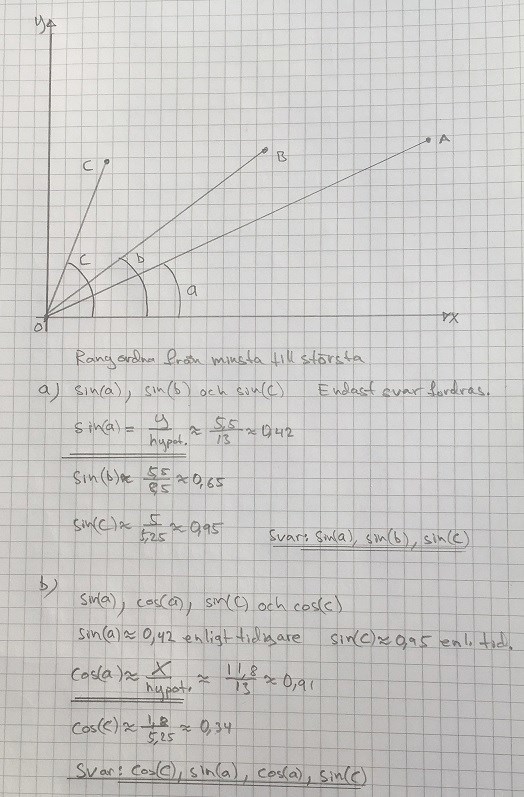 Är det korrekt rangordnat om jag svarar såhär: cos(a), sin(a), cos(c), sin(c)? Känner mig så osäker...