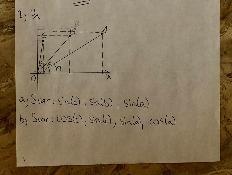 Här är bild på uppgiften. Vidare vet jag att vi håller på att lära oss enhetscirkeln nu och på lektionen började vi lära oss om hur man avläser sinus-och cosvärden på axlarna.
