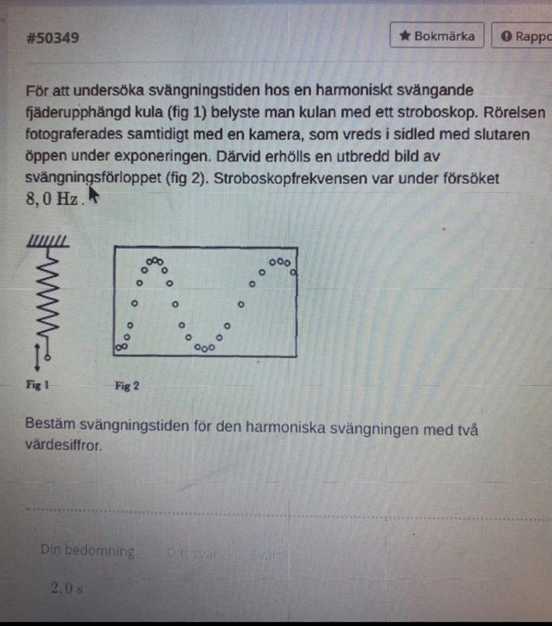 Vad säger är hur många gånger bollen visas på bilden varje sekund. Vad betyder är alltså att det är mellan varje "boll" på bilden. Kan detta hjälpa att avgöra svängningstiden?