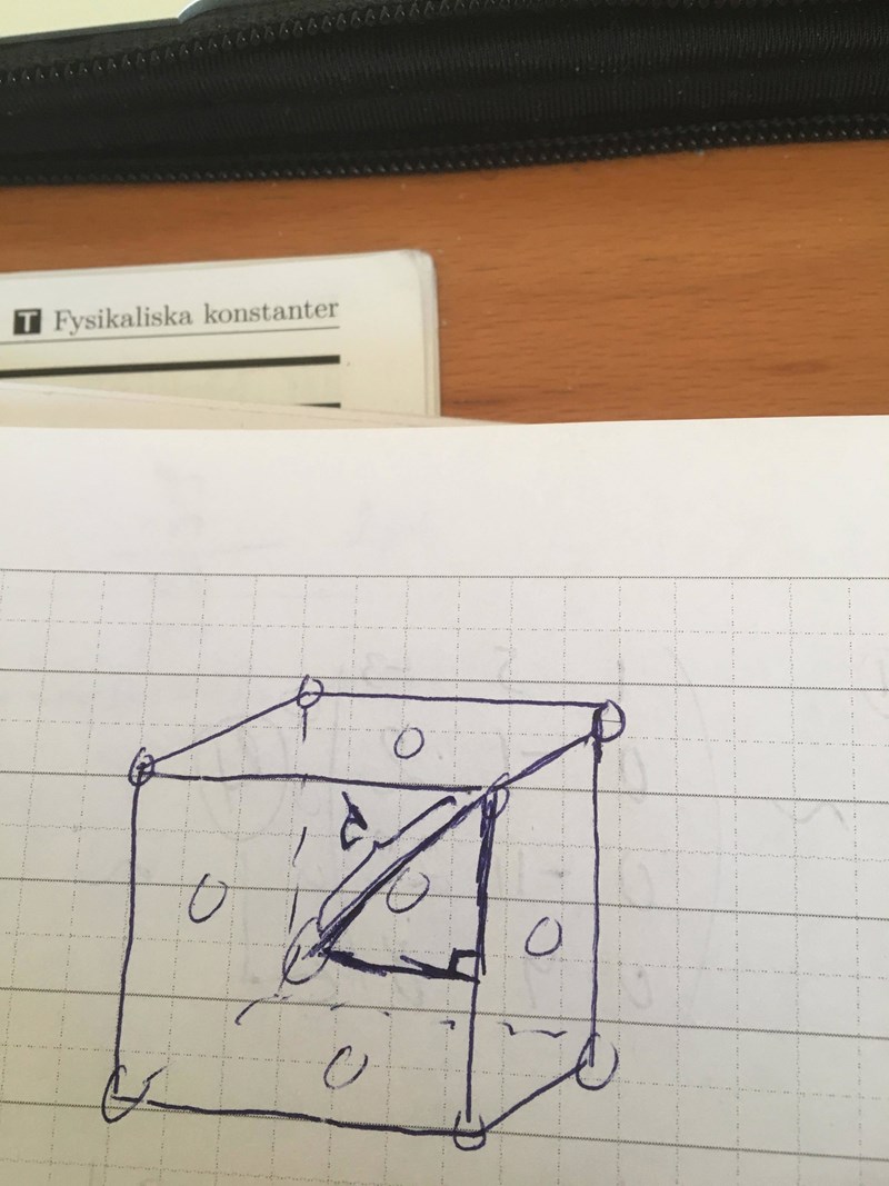 jasonbourne skrev:Smaragdalena skrev:Räkna färdigt! Vilken blir kantlängden, om avståndet mellan de närmaste atomerna är d?