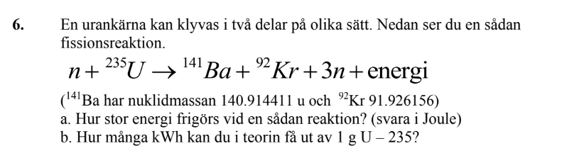 Men ska man inte subtrahera massan för Uran med antal elektroner i dess "atom", alltså - 92 Me?