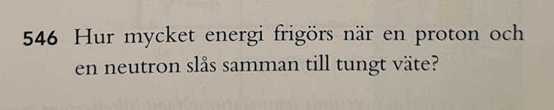 Så frågan är inte korrekt formulerat. Antingen skulle det ha stått att tungt väte produceras genom neutronabsorption i vanligt väte. Eller så säger man att en proton och en neutron reagerar till att bilda en deuteron. Reaktionsekvationen måste vara balanserad,