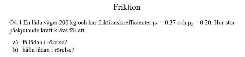 Hur ska man tänka här. Blir först och främst förvirrad kring det här med att det finns två olika friktionskoefficienter på ett objekt.