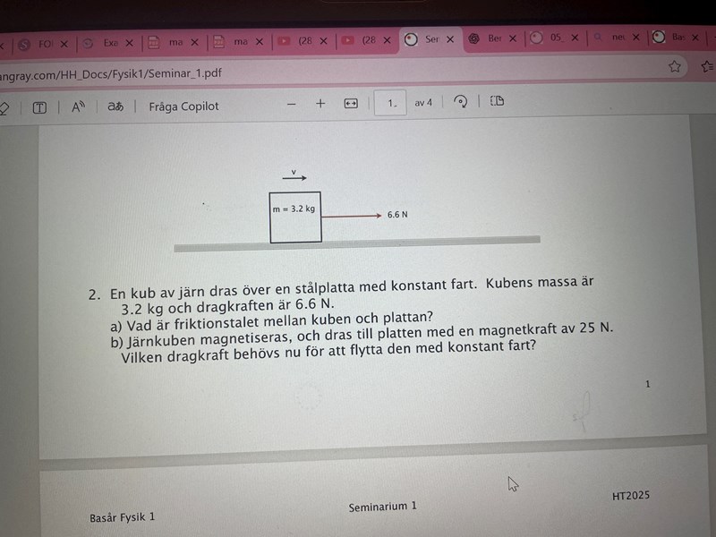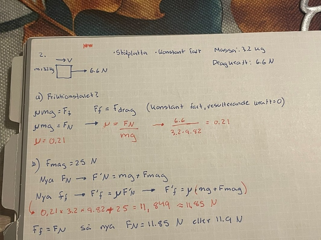 Om är normalkraften, är friktionskraften och är dragkraften så gäller följande: