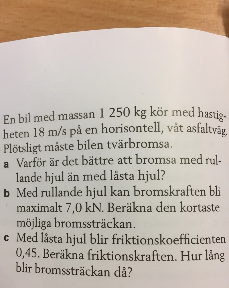 a) Det finns system för att undvika att hjulen låser sig. Dessa kallas ABS-bromsar (anti-lock braking system). Denna bild illustrerar skillnaden: