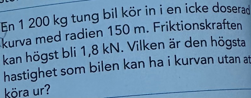 Maryam 2006 skrev:Laguna skrev:Det stämmer att friktion verkar åt det hållet också, men det intressanta här är den friktion som gör det möjligt för bilen att köra i en kurva.