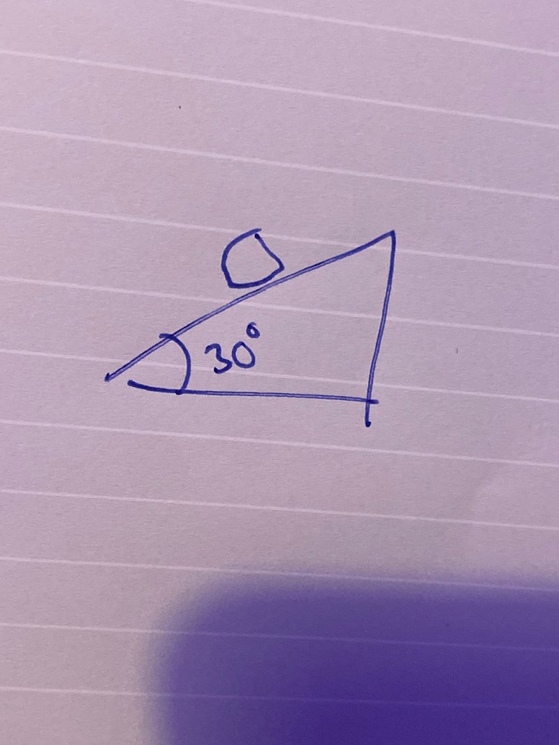 Ett suddgummi glider med en konstant hastighet på 0,74 m/s ovanpå en laptop vars lutning är 30 grader. Suddgummit väger 14 gram. Hur stor är friktionskraften mellan suddgummit och laptopen?