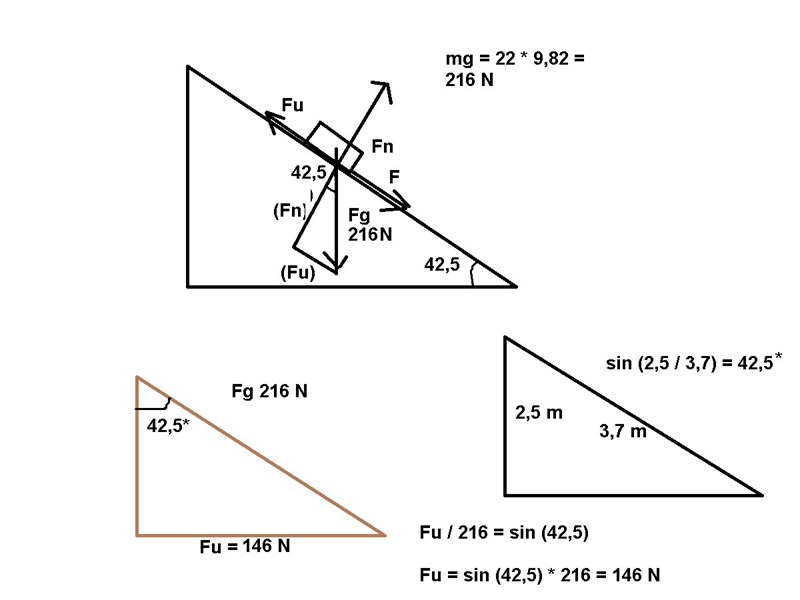 Skulle behöva lite råd i en uppgift. En person som åker rutschkana väger 22 kg. Kanan är 2,5 meter hög och 3,7 meter lång. När personen är nere är hastigheten 18 km/h.