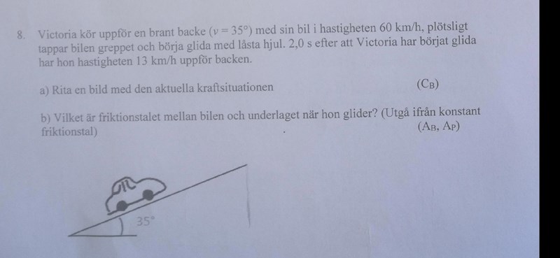 Det är också bra om du lägger till i kraftbilden. Friktionskraften ska vara motriktad rörelsen.