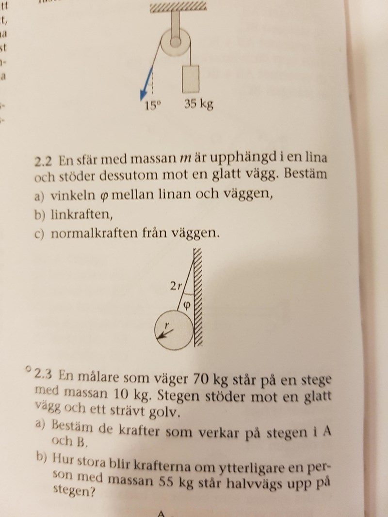 Hej har fastnat på uppgift 2.2. Vet inte hur jag ska gå vidare och lösa a,b,c. Andra bilden visar hur jag har frilagt den. Jag har försöt att lägga ihop krafterna i x och y riktning och moment men det blir inte rätt.