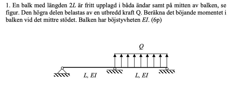 Hej skulle behöva hjälp med denna uppgift, har frilagt balken som sådan men vet inte hur jag ska formulera kraften Q i kraft och momentjämvikt