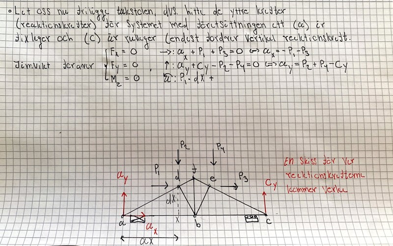 Jag placerade åt höger (positiv riktning) till att börja med och sedan om den blev negativ (vilken den måste bli) så byter jag riktning efter beräkning av , kan man göra på detta sätt eller är det ett krav att begripa vart reaktionskrafterna kommer vara innan beräkningar?