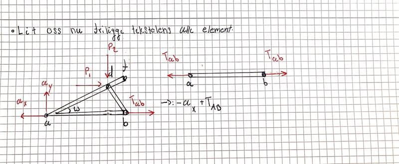 det står också i min läsebok lite om förenade stångar men endast då yttre belastning inte finns, och i mitt problem finns ju yttre belastning vid d.