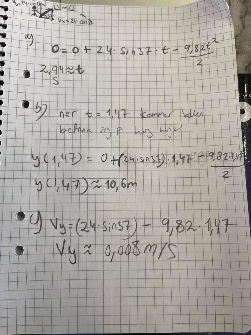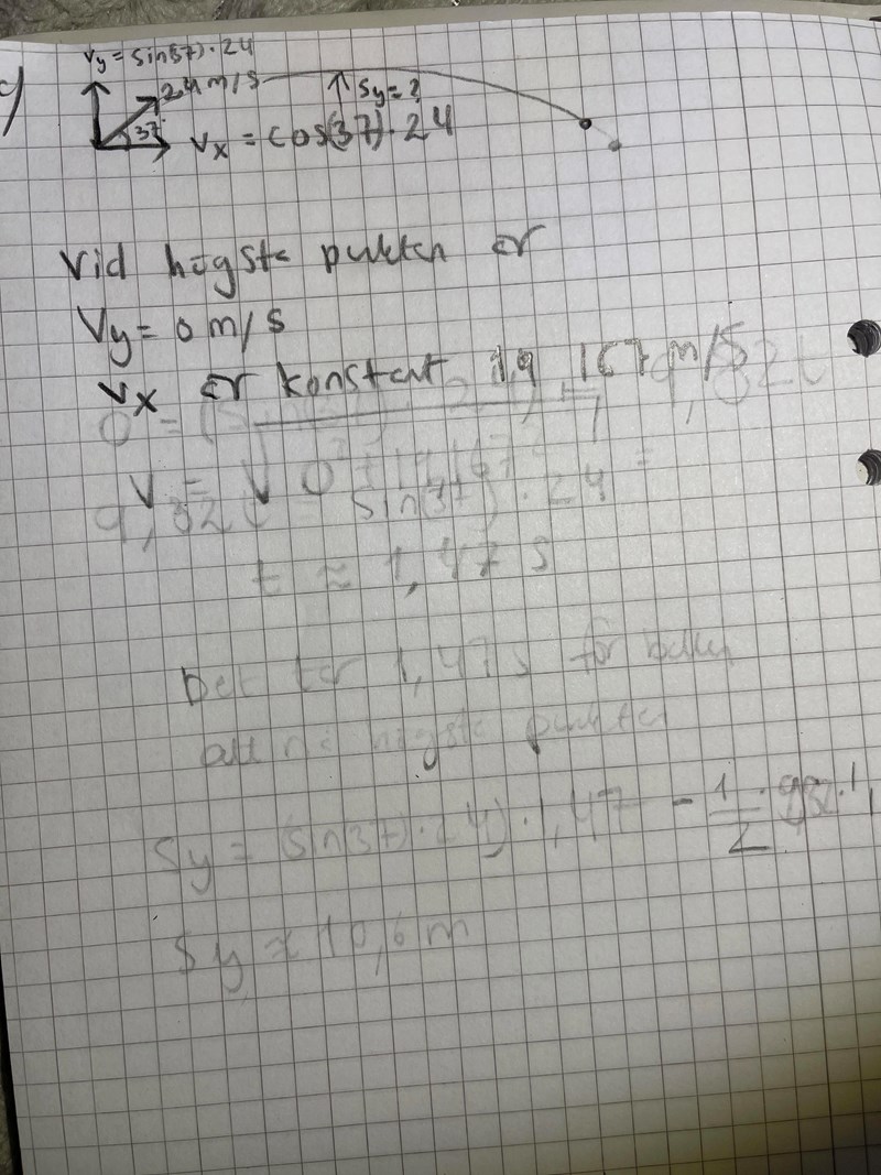 Du vet att y-komposanten är lika med 0 vid högsta punkten. Du vet att x-komposanten inte är lika med 0 vid högsta punkten. Ser du att det här är exakt samma situation som a-frågan i den här uppgiften?