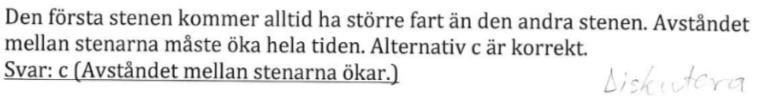 Den andra stenen kommer alltid ha en hastighet som är lite lägre än första. Detta gör att avståndet kommer att öka! Men när det har gått en väldigt lång tid kommer vilket gör att .