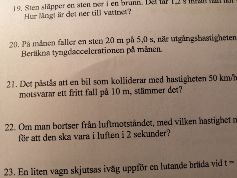 Ture skrev:Det dom vill veta är om en bil som ramlar från 10 meters höjd har en hastighet på 50 km/h när den träffar marken.