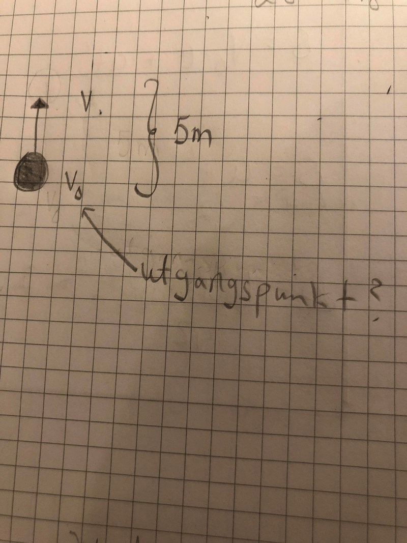 Utgångspunkten är längst ner, men man kan lösa problemet genom att bara titta på andra halvan av banan. Då är bollen (tillfälligt) i vila högst upp och faller sen ner. Den får samma fart längst ner som den sparkades upp med.