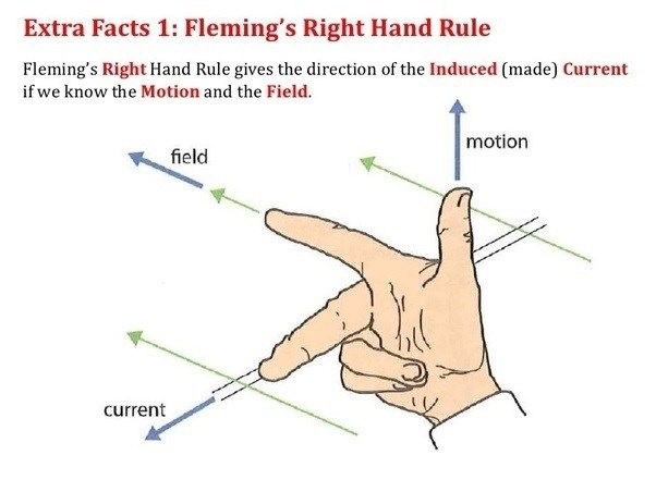 Då ska man vrida handen så att tummen pekar i rörelseriktningen, pekfingret i fältets riktning och långfingret kommer då att peka ut strömmens riktning.