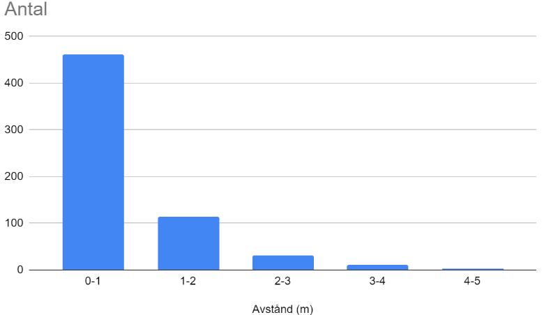 Vi har i uppgiften räknat ut ett väntevärde genom att ta värden för och vikta dessa med sannolikheten för detta . Kom ihåg vad är, det är avstånd från plantan mätt i meter. Så, vad betyder det då att vi beräknat ett väntevärde: