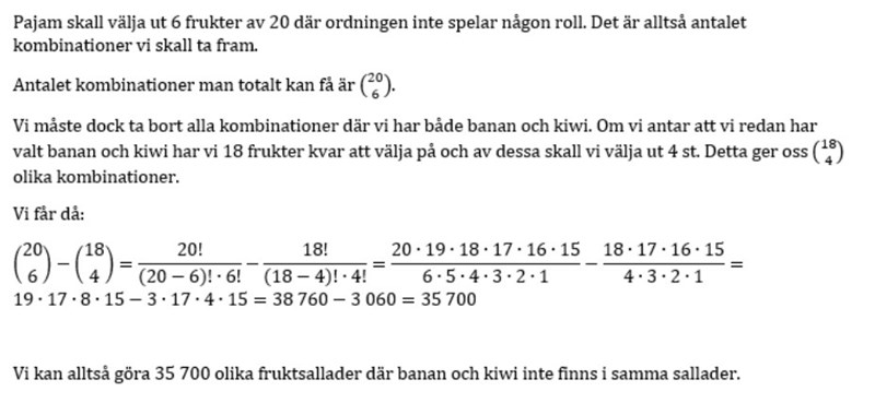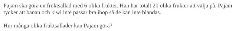 Om Pajam har valt banan (eller kiwi) så skall han bara välja 5 frukter till, inte 6.