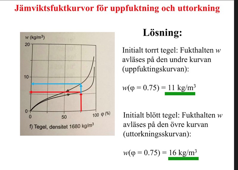 här ska fukthalten uppskattas med hjälp av grafen. Men jag får det till 6 resp 8 ungefär. Tänker jag fel eller är det svaren som är fel?..