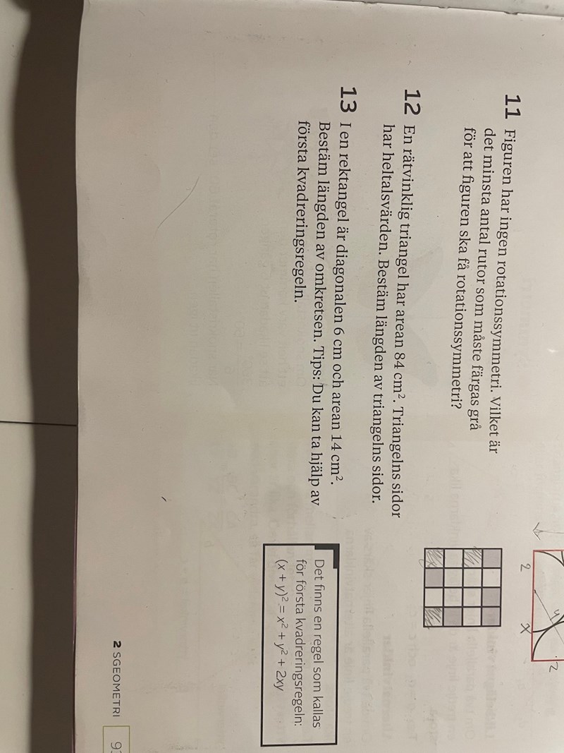 Jag behöver hjälp med uppgift 13 på svarta sidorna i matte direkt 9 inom kapitlet geometri. Jag tänkt och prövat orimligt mycket men jag fattar verkligen inte. Jag tror att man behöver dela upp den ena triangeln i rektangeln men är inte säker på det. Hjälp uppskattas!