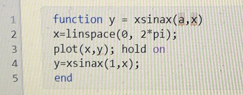 Vet inte exakt vad som är fel, men det ser rätt konstigt ut att tilldela x en linspace på rad 2 när det är en input-variabel.