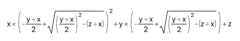 Gällande frågan så vet jag bara att om det bara finns en nollpunkt så måste det betyda att funktionens nollställe är detsamma som funktionens vändpunkt. Dock vet jag inget samband. Men höll på ett bra tag och upptäckte något jag inte riktigt förstår. Tyvärr kommer x bli a, a blir x, b blir y och c blir z.