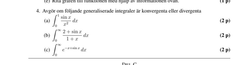 b) om den generaliserade integralen med f(x) som integrand är divergent så är integralen med g(x) som integrand också divergent."