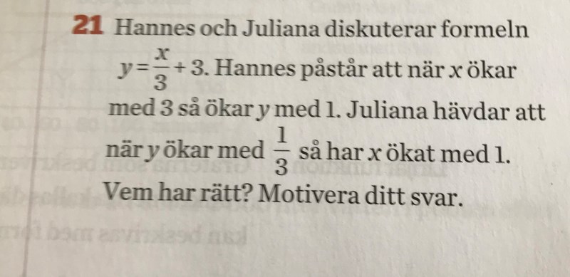 Sedan Juliana's påstående.  "När y ökar med 1/3 så har x ökat med 1".