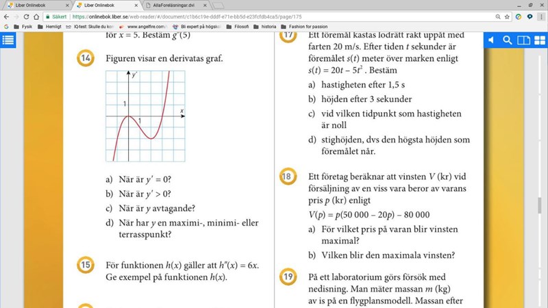 Ture skrev :le chat skrev :Derivatan vid O är ju noll och i och med att den ökar fram till noll och sedan avtar efter O borde då inte funktionen ha en maximipunkt när x=0
