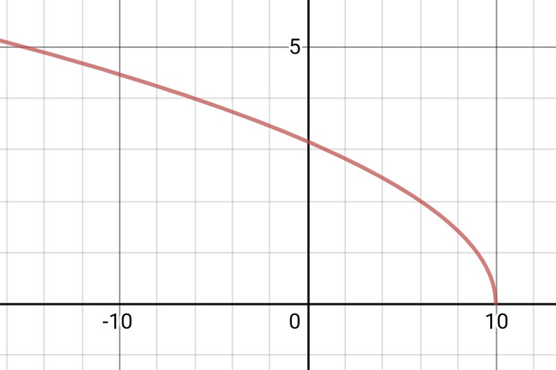 Om vi endast pratar om reella tal så tar t.ex. "stopp" vid . Funktionen är då inte definierad för x-värden större än 10.