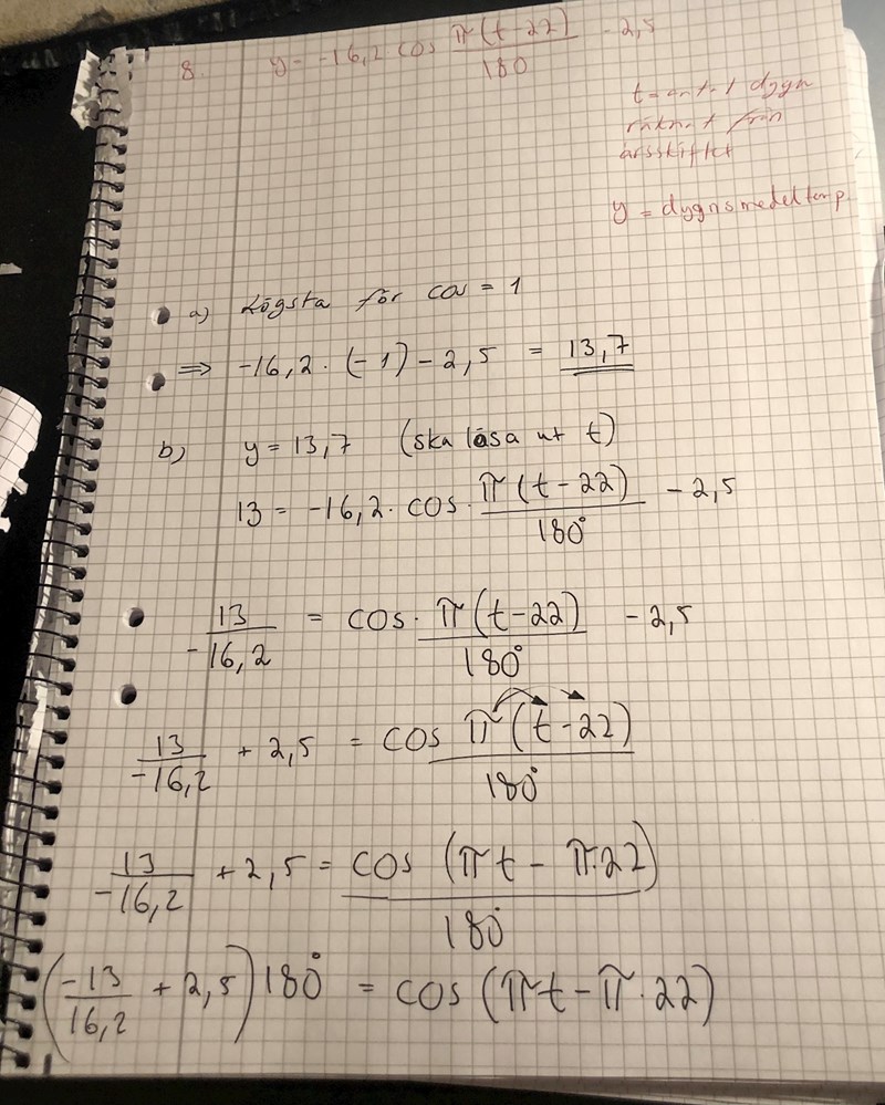 Hur ska jag på b) få t ensamt? (Där jag skrivit 13 ska det stå 13,7)