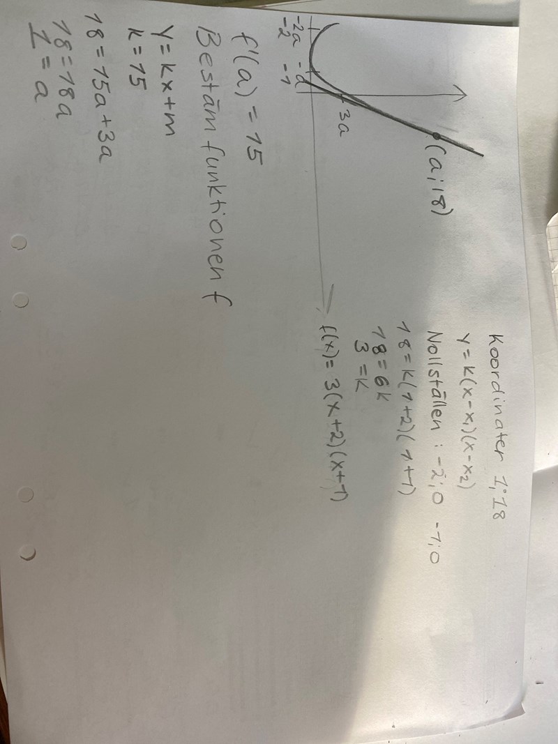 Den enda informationen jag fick på ett papper var denna graf samt att f’(a)=15. Bestäm funktionen f