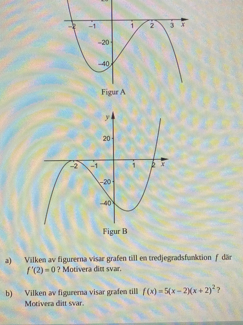 Ahmed5349 skrev:Hej! På fråga b, kan man säga att det finns ett dubbelt nollställe i figur b när x är -2, därför är figur B rätt?